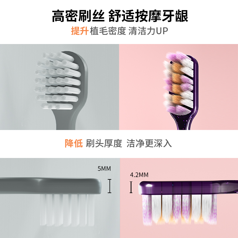 外层紫色螺旋弹力刷毛,深度清洁牙齿缝隙;