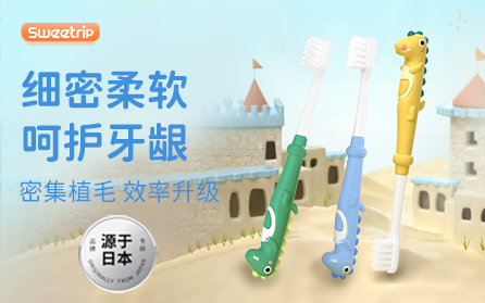 0.12mm柔软刷毛,柔韧高弹,入口轻柔刷感,萌趣防滑恐龙造型,让宝宝爱上刷牙!