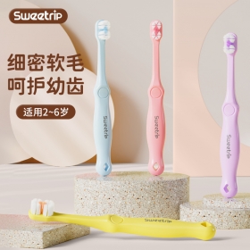 舒适双重软毛,专为2-6岁宝宝设计,大孔密集轻柔刷毛,呵护宝宝稚嫩牙龈